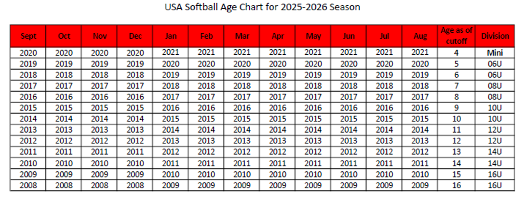 Official Team Practice starts February 2026, Opening Day will be in March 2026 and Closing Day is June 2026 for our spring season.